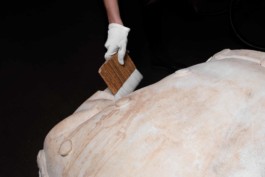 For an exhibition about the Danish sculptor Helen Schou in Randers, Aarhus Town Hall was contacted in the hopes that they might have a few sketches of one of her main pieces, a sculpture of King Christian X on horseback. Turns out they had the entirety of the original cast for the five meter statue in their basement. Conservators and an art shipping company spent the entire day gently moving, cleaning and packing the pieces with specialized equipment.